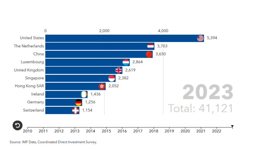 Οι δέκα πρώτες χώρες υποδοχής ΑΞΕ το 2023